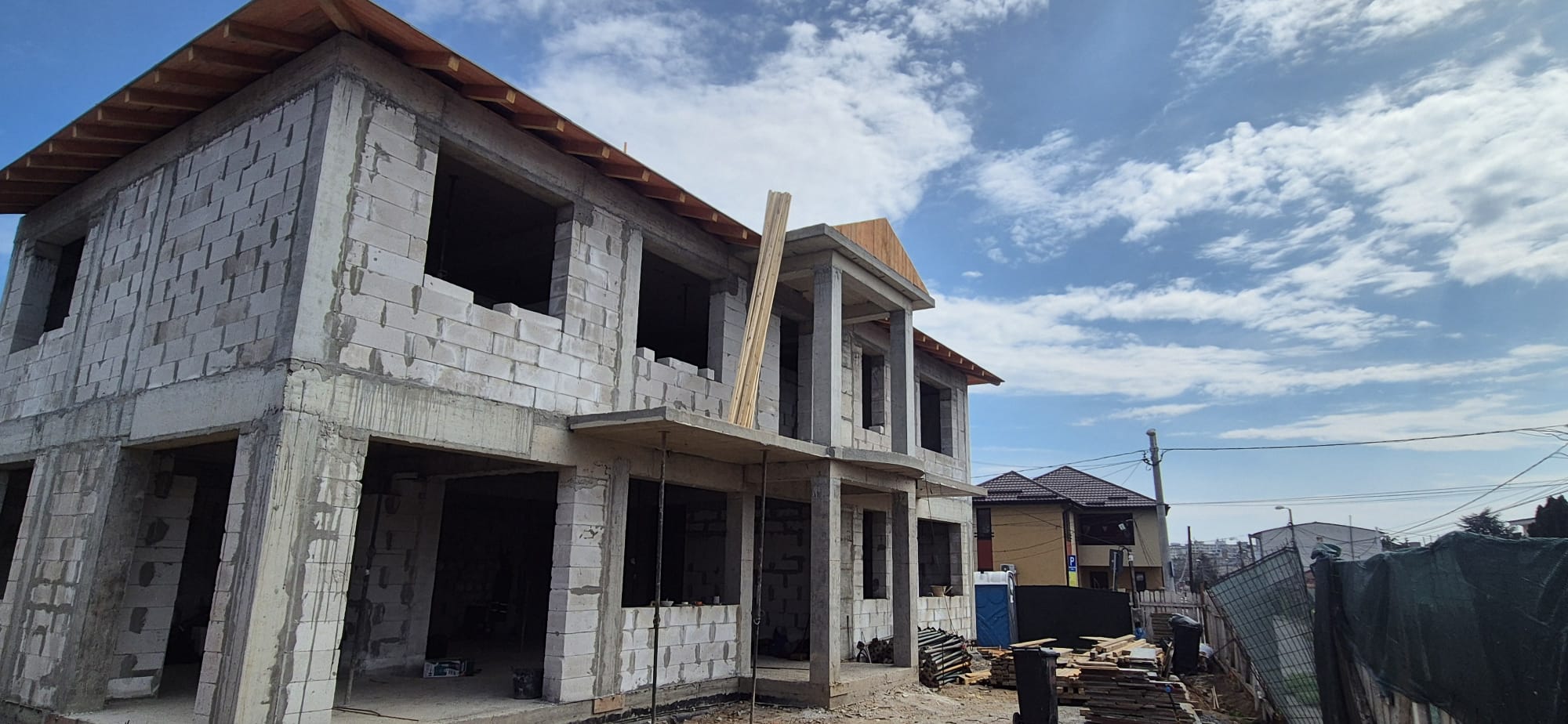 Actualizare din santier pentru o casa P+1E aflata in executie. Am pastrat descrierea fara adresa exacta, cu focus pe stadiul lucrarii si pe executia structurii.